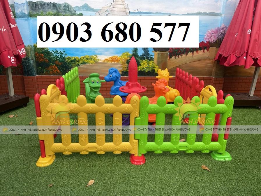 - Hàng rào nhựa mầm non có thiết kế gồm nhiều miếng ghép nhựa lại với nhau. Sản phẩm được liên kết bằng các khớp nhựa, dễ dàng tháo lắp và di chuyển khi cần thiết.