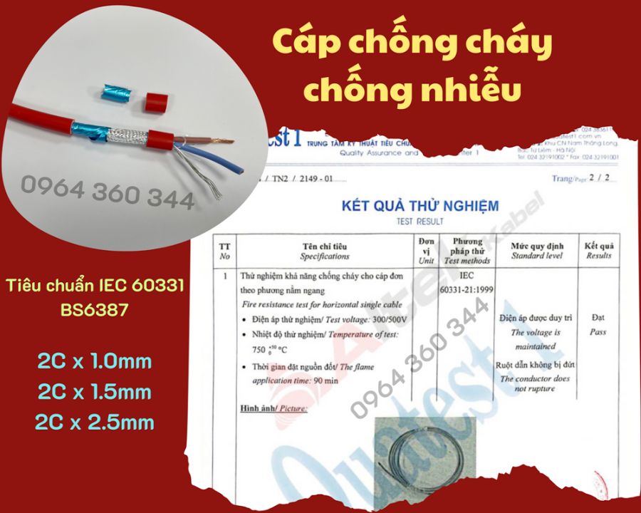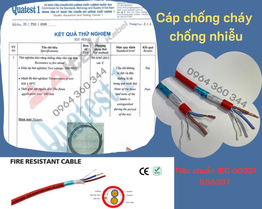 - Đạt tiêu chuẩn chống cháy IEC 60331 (BS6387)- Chứng nhận chống cháy Quatest 1