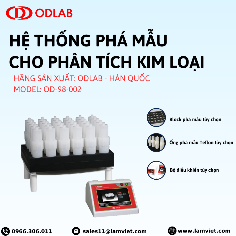 Hệ thống phá mẫu ODLAB là thiết bị lý tưởng cho các phòng thí nghiệm phân tích hóa học và môi trường, giúp phá mẫu nhanh chóng, chính xác và ngăn ngừa nhiễm kim loại nặng. Thiết kế với khối than chì phủ Teflon chống ăn mòn, hệ thống đảm bảo tuổi thọ và hiệu suất vượt trội.