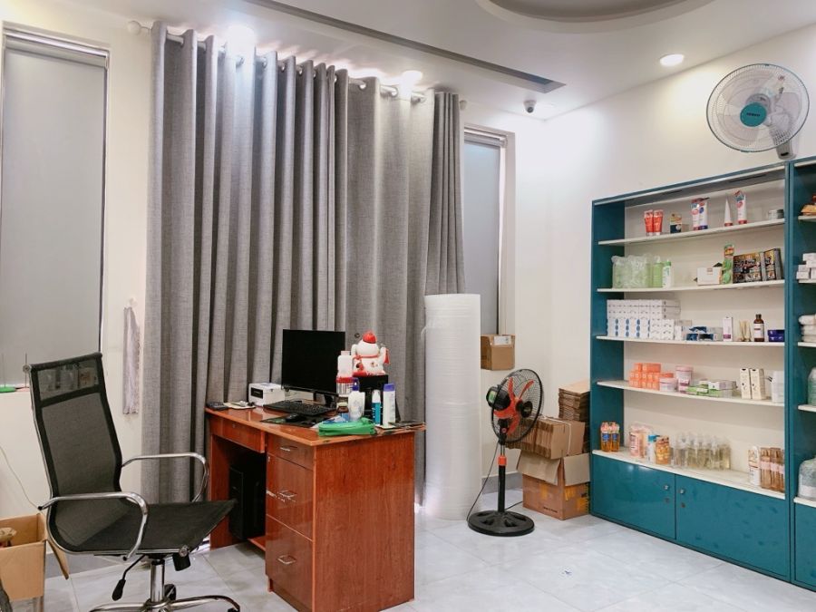 - Nhà 5 tầng, trệt, lửng, 2 lầu, sân thượng gồm có phòng khách, 4 phòng ngủ, phòng thờ, bếp, 5 wc, sân trước