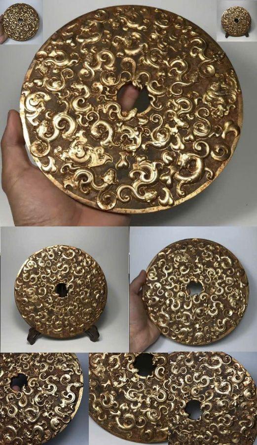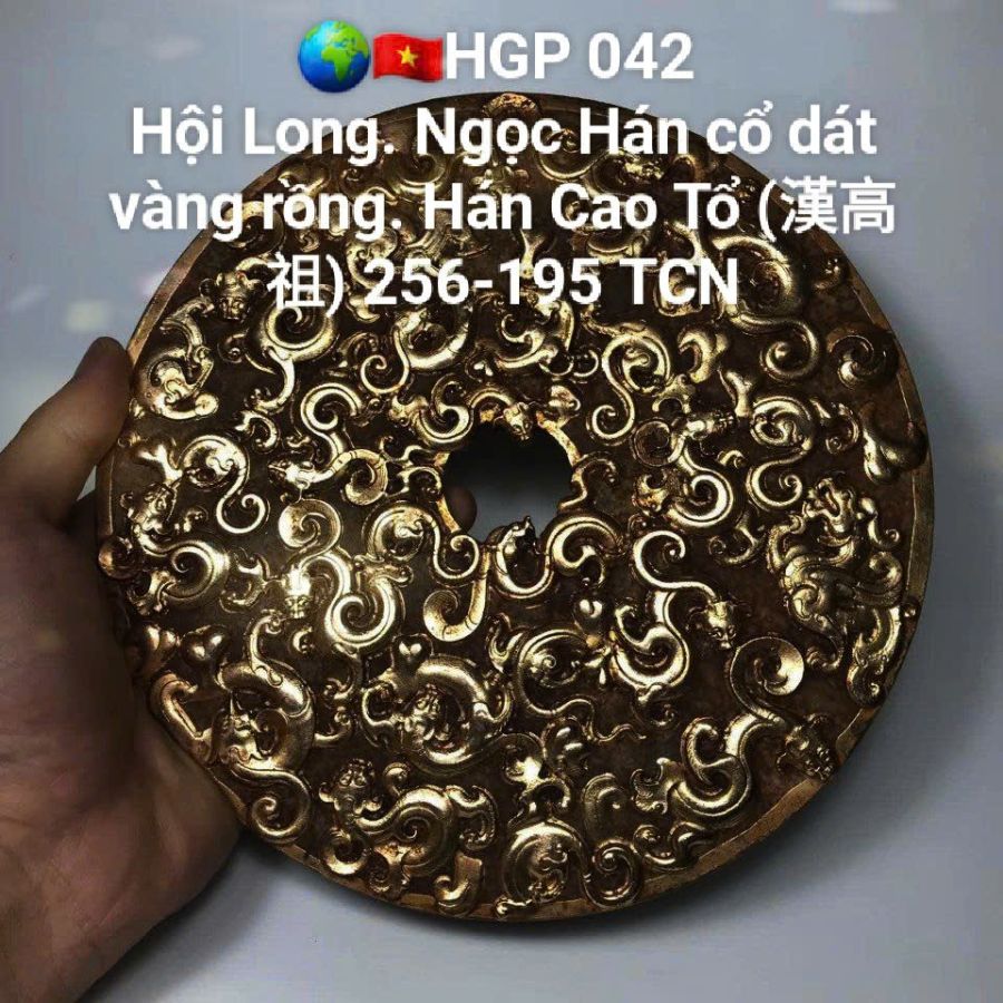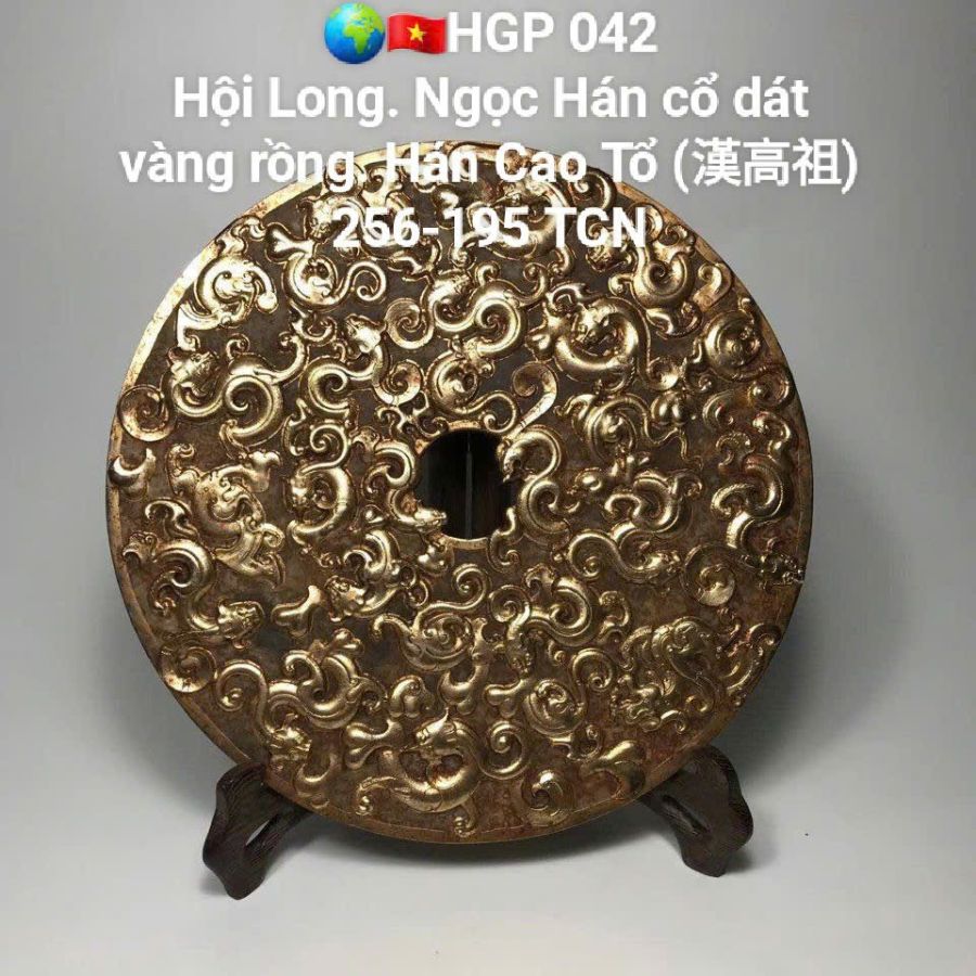 HGP 042 Ngọc Hán cổ tráng men dát vàng 24k. Hán Cao Tổ 漢高祖 256-195 TCN