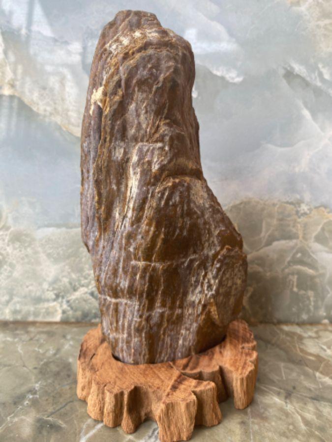 Viên này là gỗ lũa hoá thạch rất cứng và dáng cao đẹp cả 4 mặt.
