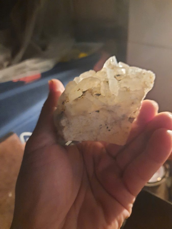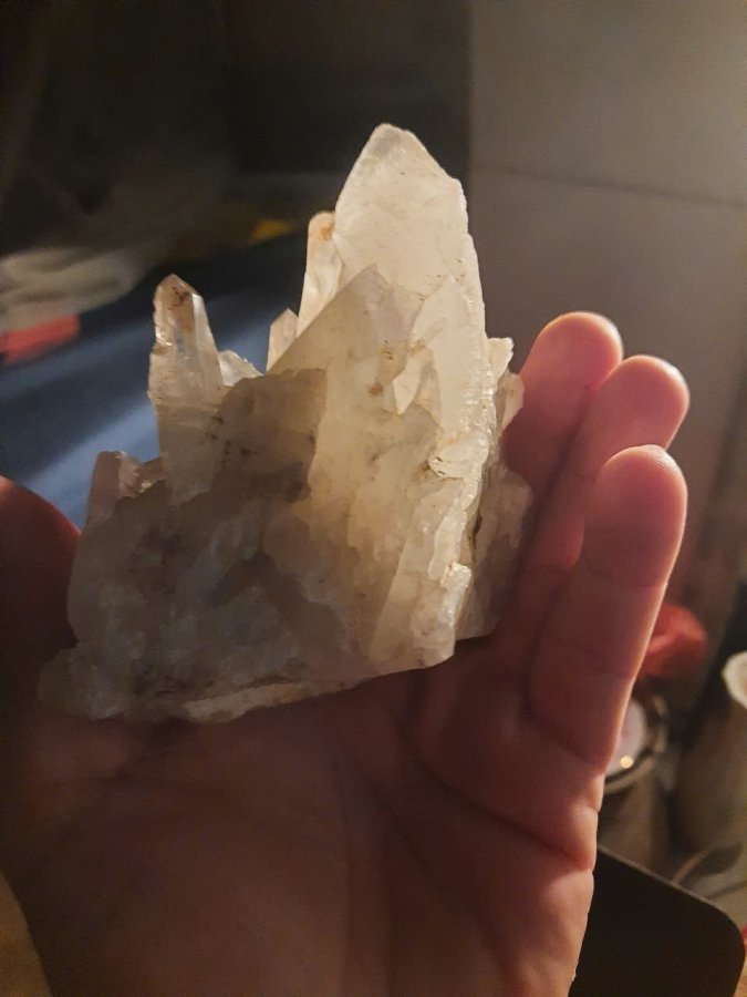Hòn đá thạch anh già, dáng núi thấu quang tốt, lên nhiều chỏm nhọn nhìn như hoa ưu đàm, và cũng giống bàn tay phật đang bấm quyết luyện thiền.