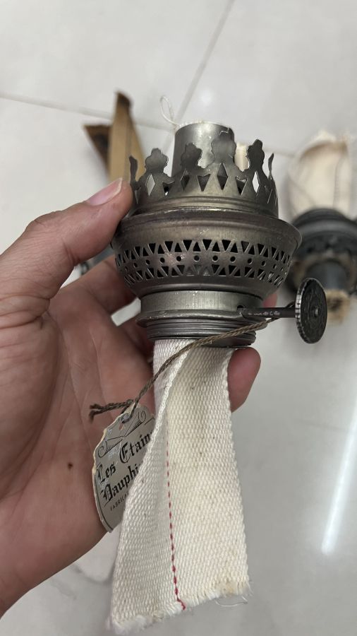 4 họng đèn dầu Pháp lành đẹp chân bóng 5.2cm. Ren 3.9cm