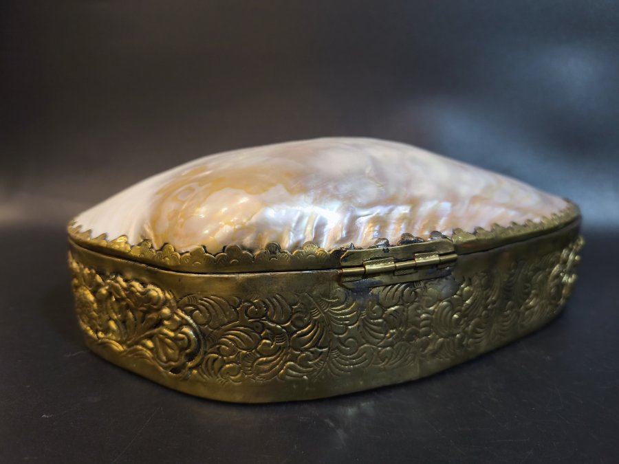 Nắp nguyên là 1 vỏ ốc xưa kích thước lớn ( vỏ ốc xưa bán cho người cẩn xà cừ giá không hề rẻ ).