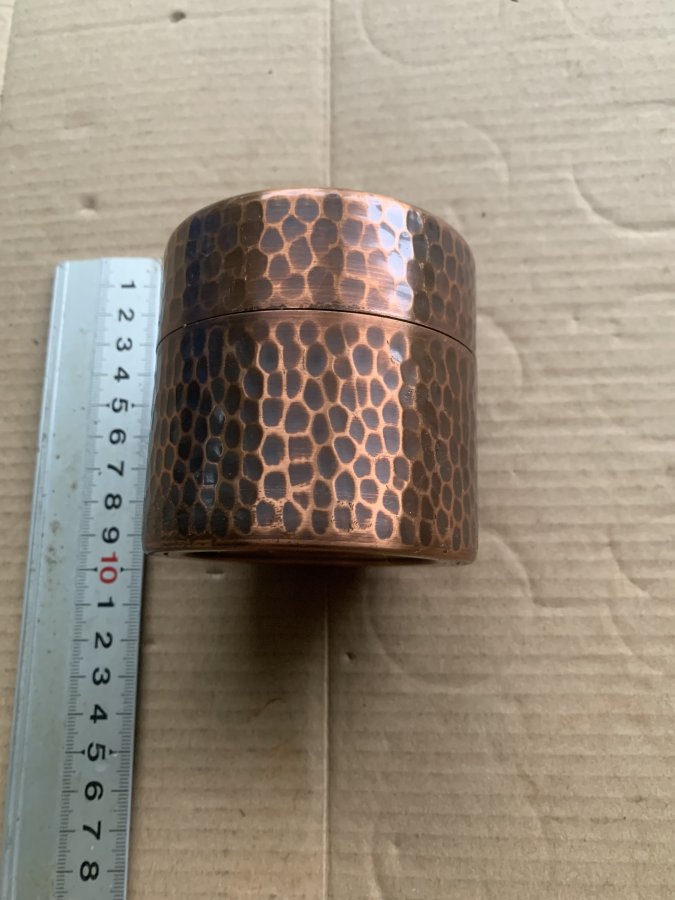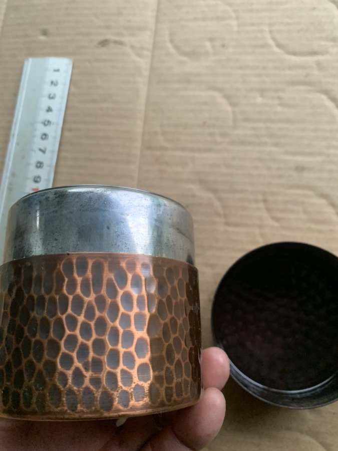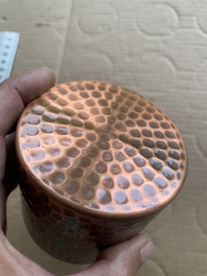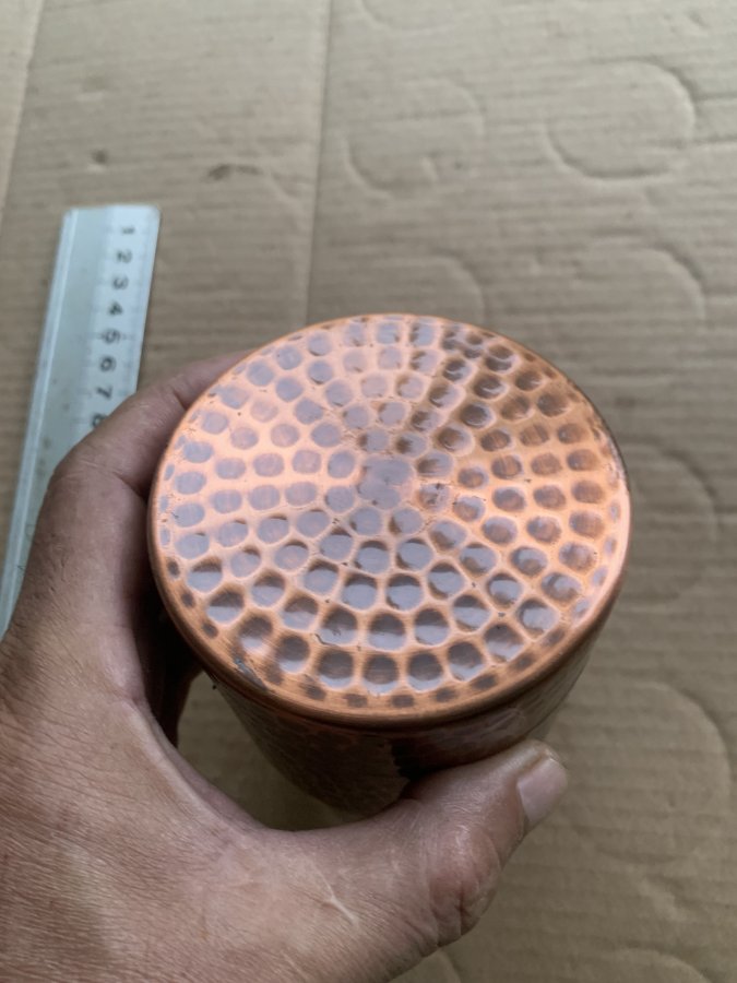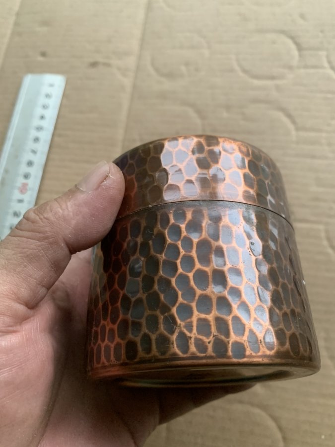 Sản phẩm có dấu hiệu đã qua sử dụng, được làm bằng đồng gõ vân búa thủ công sắc xảo, ruột là hộp sắt riêng biệt. Sản phẩm chưa vệ sinh, anh chị mua về vệ sinh lại sử dụng. Cám ơn đã xem tin.