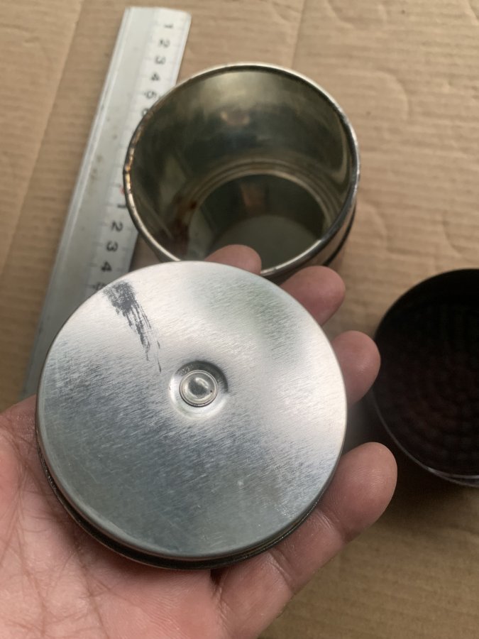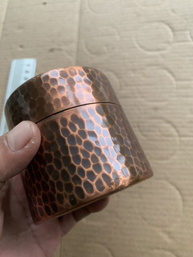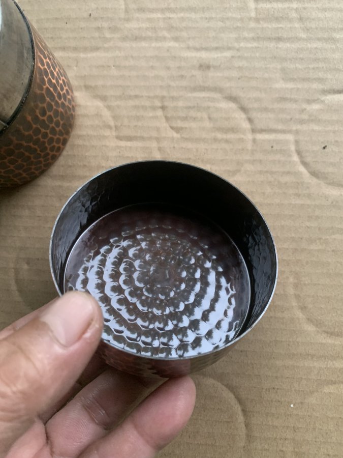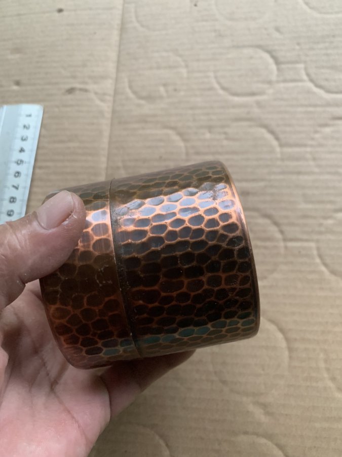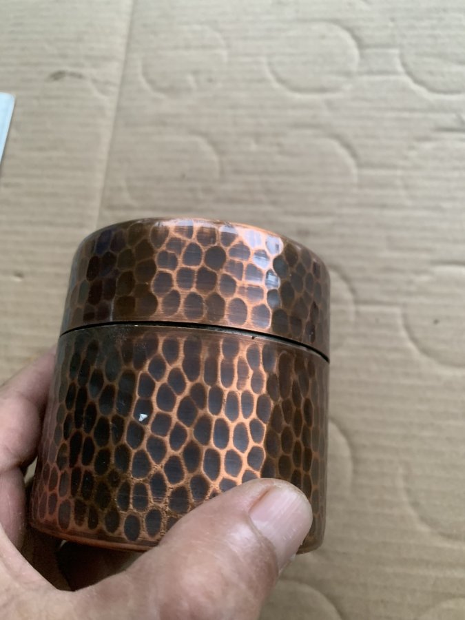 Sản phẩm có dấu hiệu đã qua sử dụng, được làm bằng đồng gõ vân búa thủ công sắc xảo, ruột là hộp sắt riêng biệt. Sản phẩm chưa vệ sinh, anh chị mua về vệ sinh lại sử dụng. Cám ơn đã xem tin.