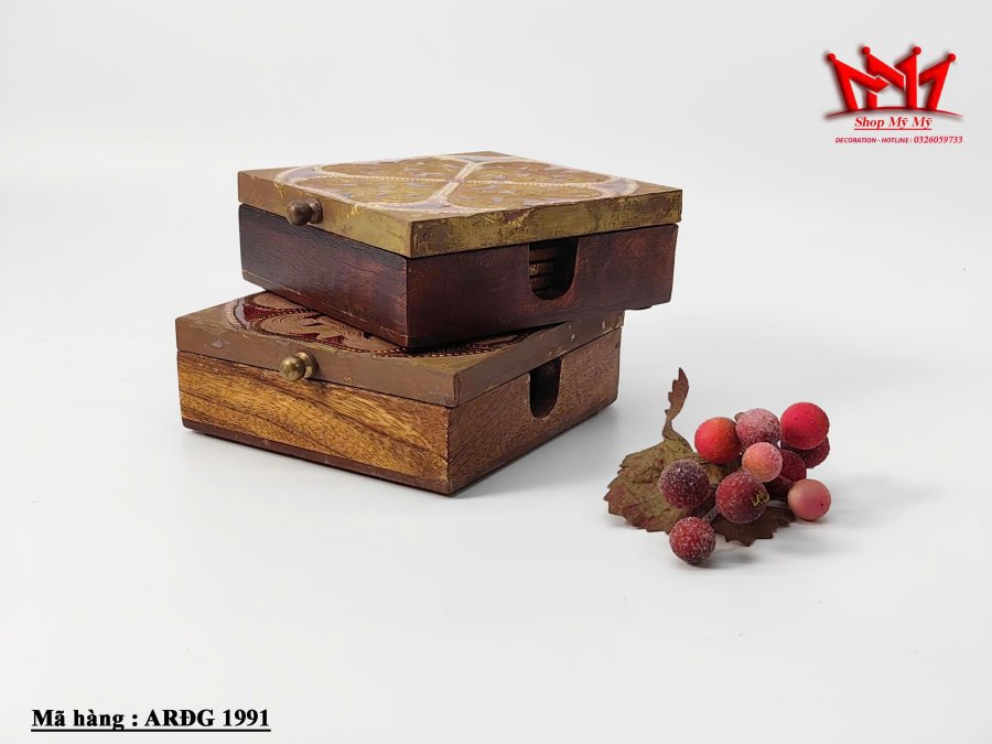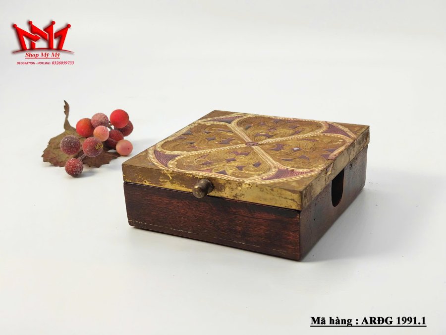 Hộp đựng trang sức bằng đồng và gỗ được chạm khắc thủ công
