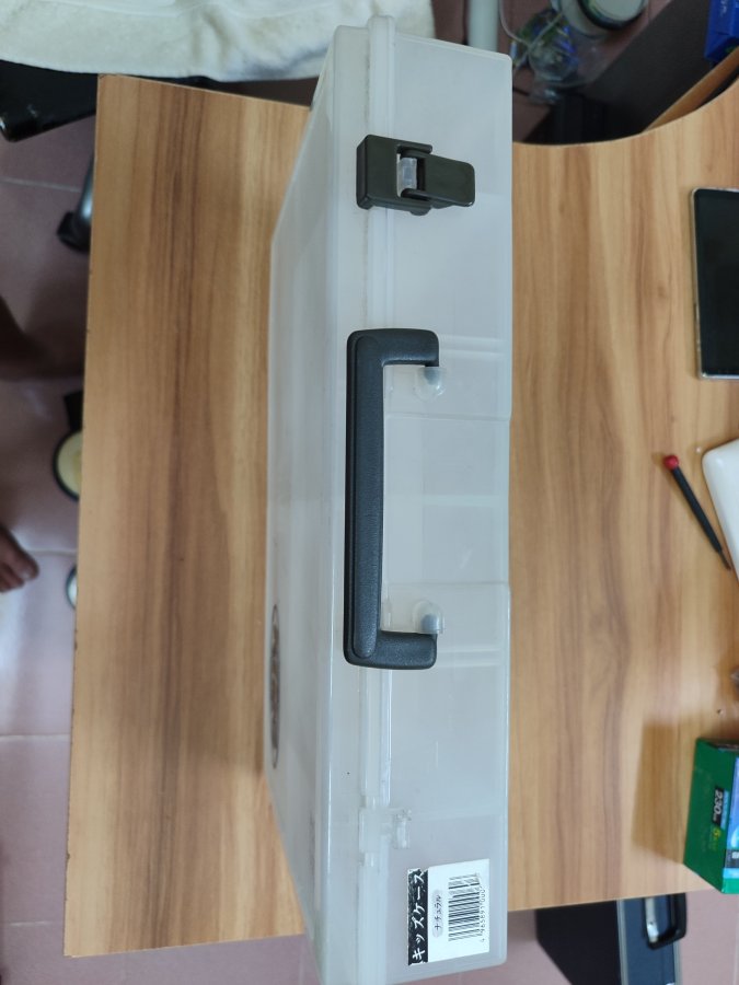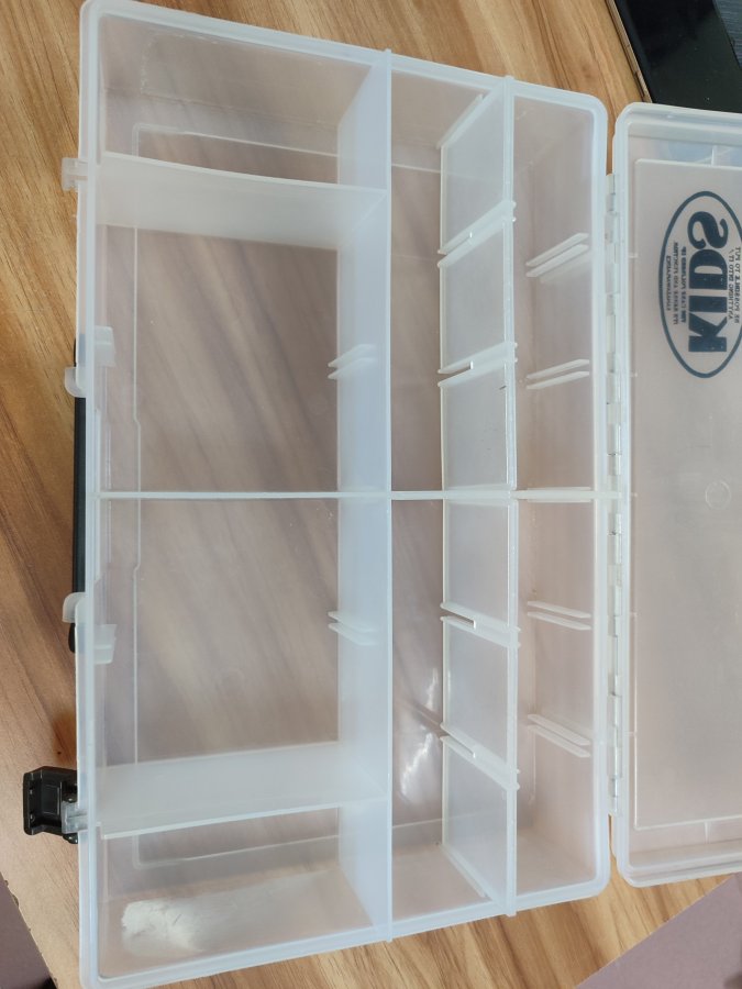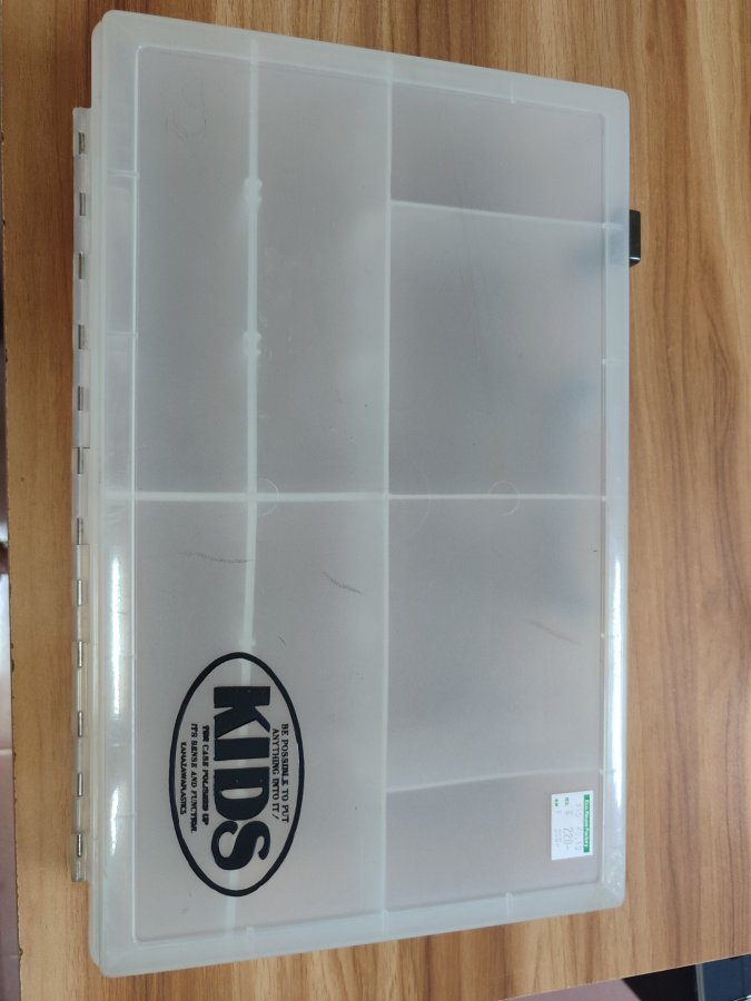 Hộp nhựa đựng linh kiện hàng Nhật, có ngăn chia, bị mất 1 bên khóa cài, còn 1 bên nhưng đóng vẫn chắc chắn. Kích thước 39 x 33.5 x 8 cm