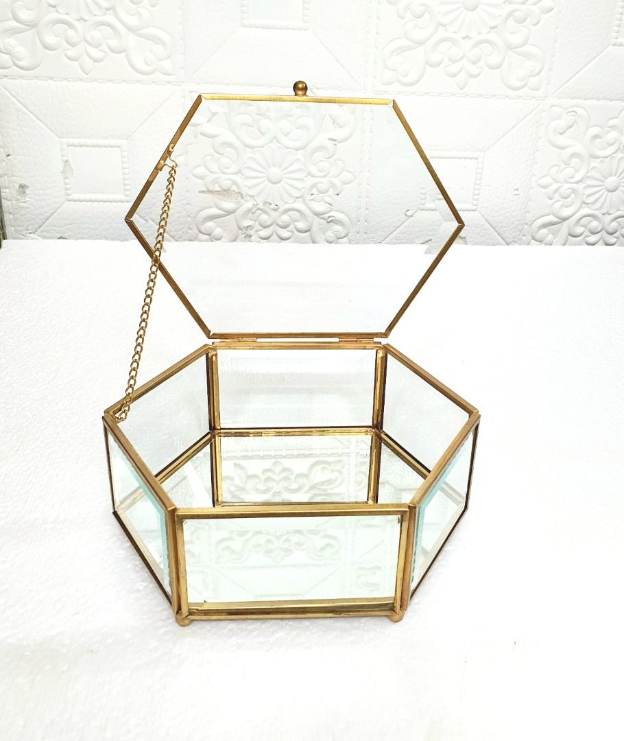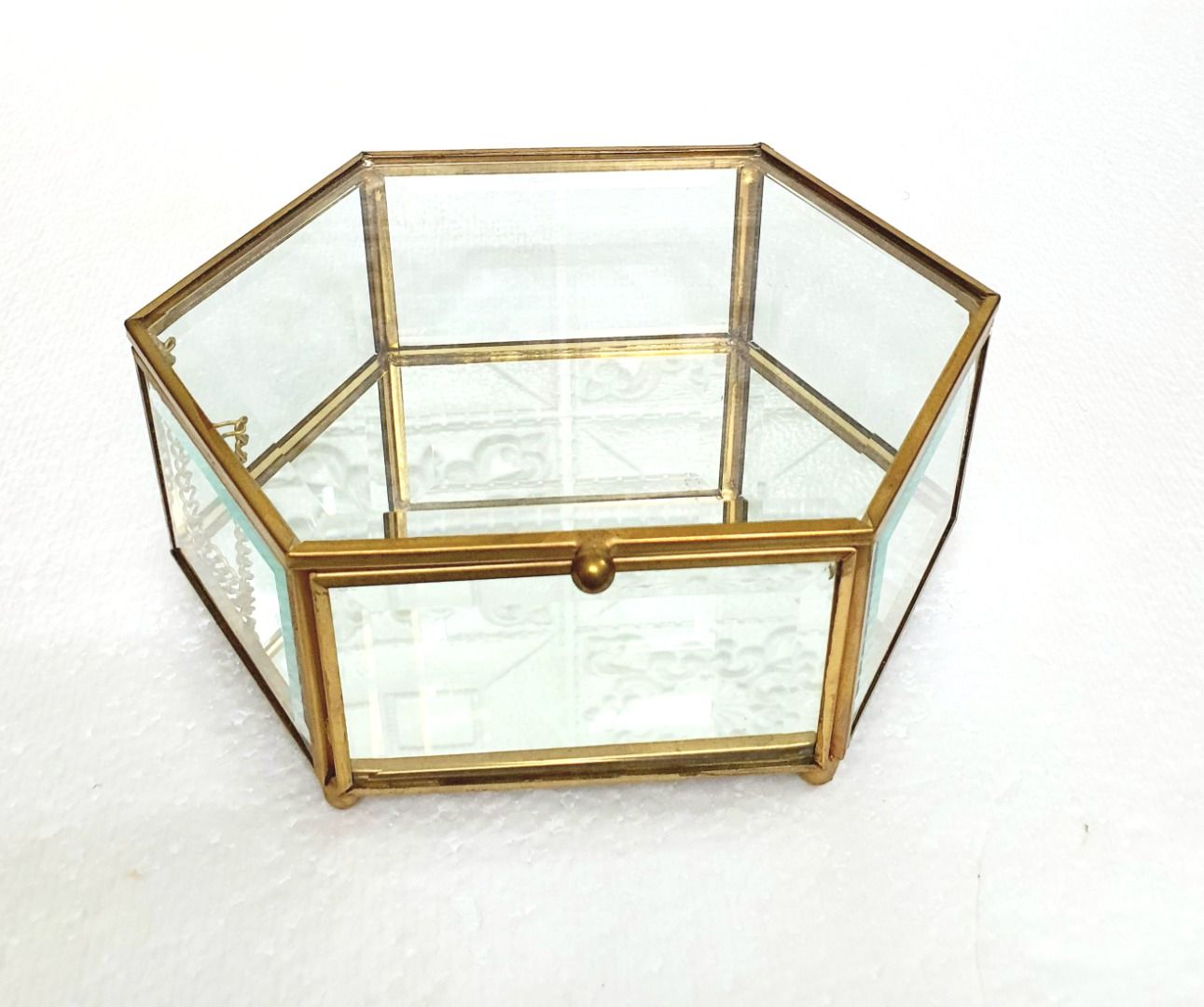 Hộp thủy tinh viền đồng rất đẹp, các mặt kính đều vát cạnh rất đẹp, hộp này mà đựng trang sức hay đồ quý thì không còn gì để bàn luôn, ngang 18.5 cm, cao 7.5 cm, hàng Châu Âu, rất thích hợp sưu tầm. Cám ơn cả nhà đã xem tin