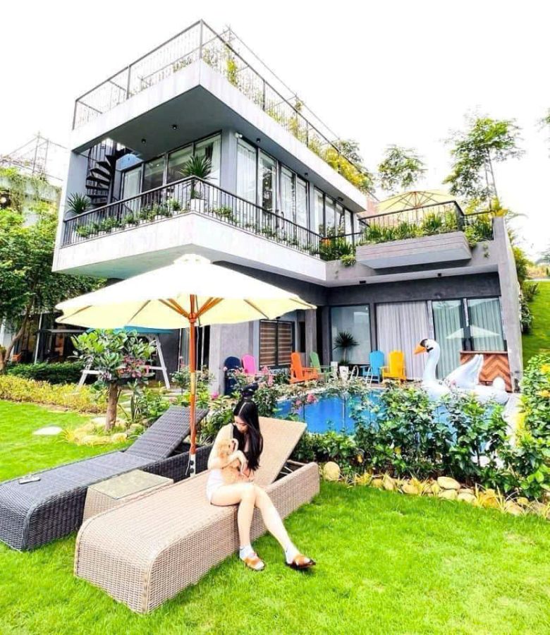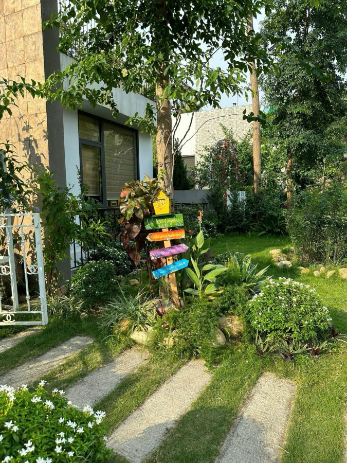 - Căn biệt thự được thiết kế tinh tế, hiện đại nhưng vẫn hoà hợp với thiên nhiên. Trang bị đầy đủ tiện nghi, các phòng ngủ rộng rãi, phòng khách thoáng đãng và sân vườn xanh mát.