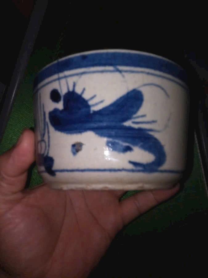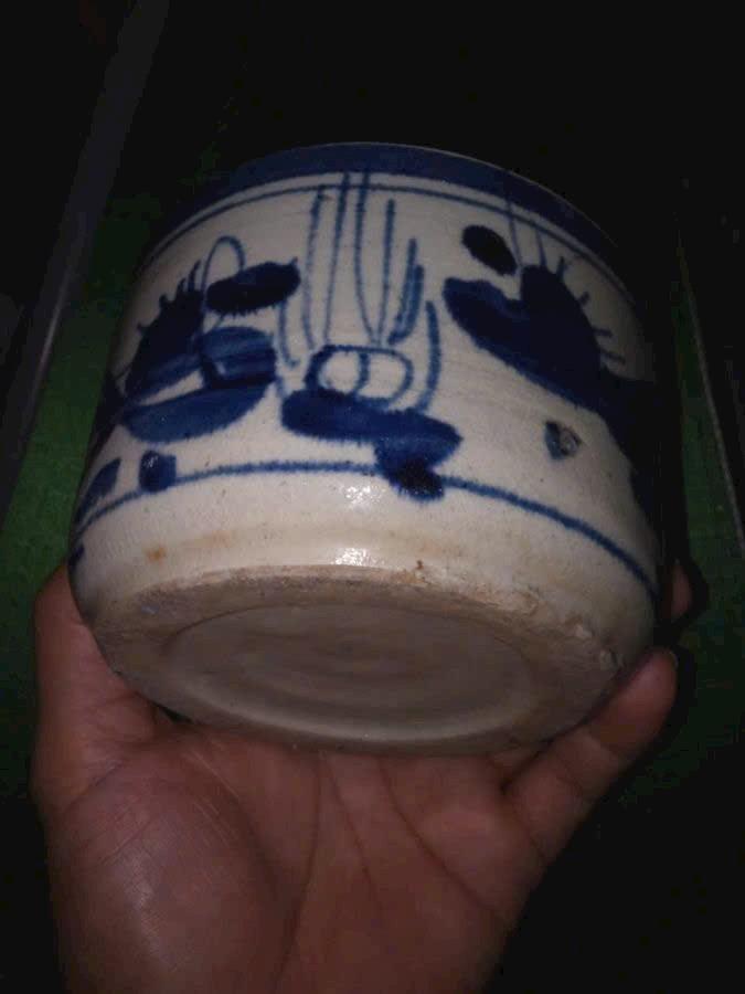 Hũ dâng hương sứ bát tràng thời bao cấp, miệng 12cm, cao 8cm, lành đẹp. Vẽ mực chàm xanh tích song long chầu nguyệt. Dáng vại, vách cao.