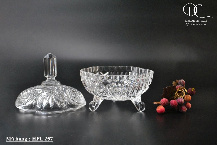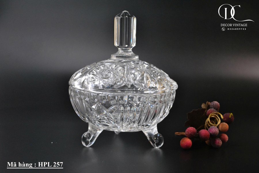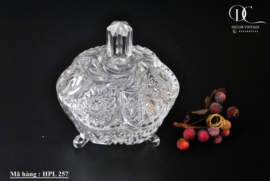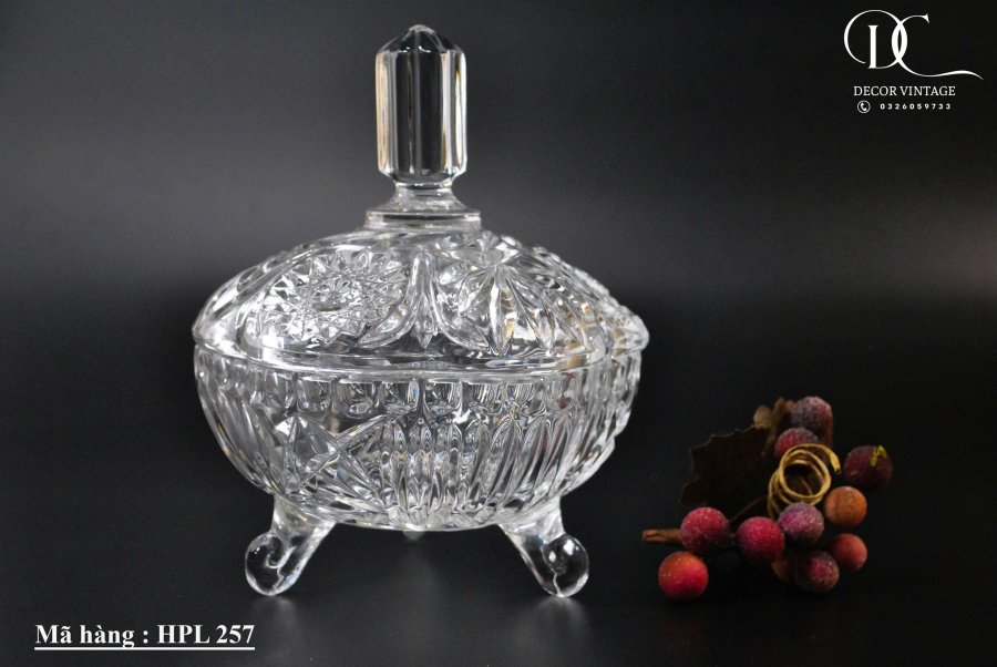Hũ đựng kẹo có chân pha lê cắt đẹp cổ điển có nắp đậy sang trọng.