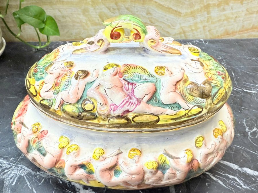Hủ gốm sứ Capodimonte - ITALY hoạ tiết baby nổi được làm thủ công rất đẹp