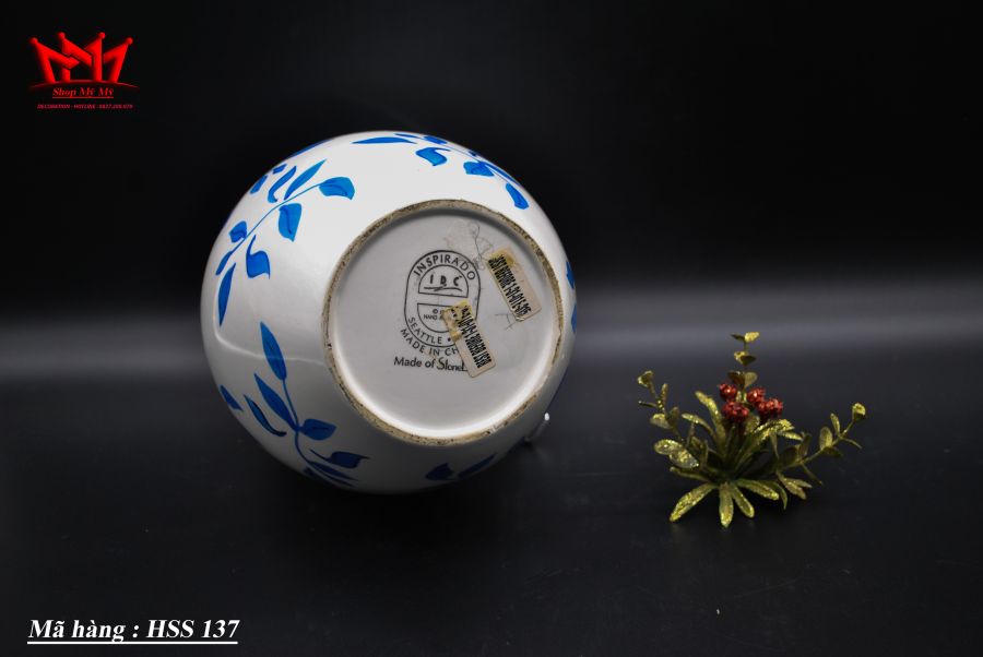 Hủ sứ hình lá màu xanh dương có nút cao su kín.