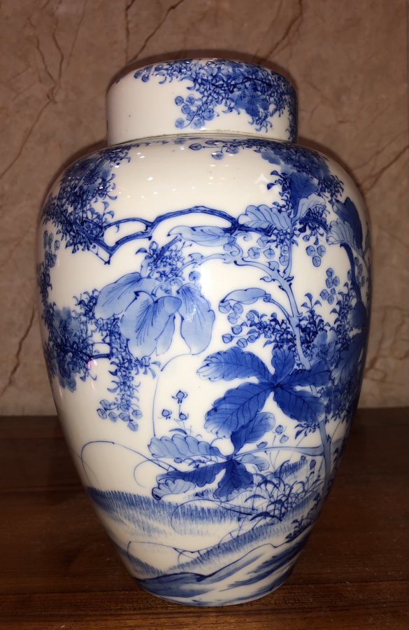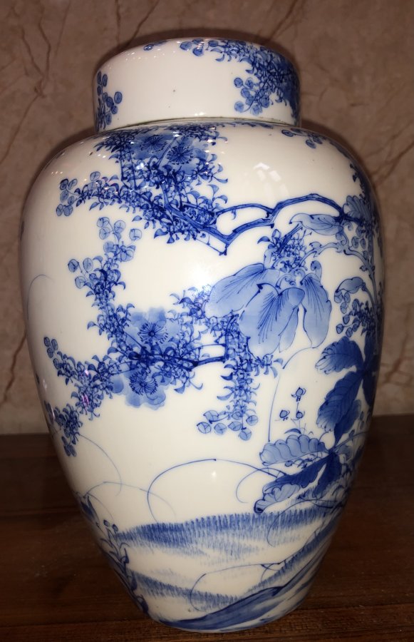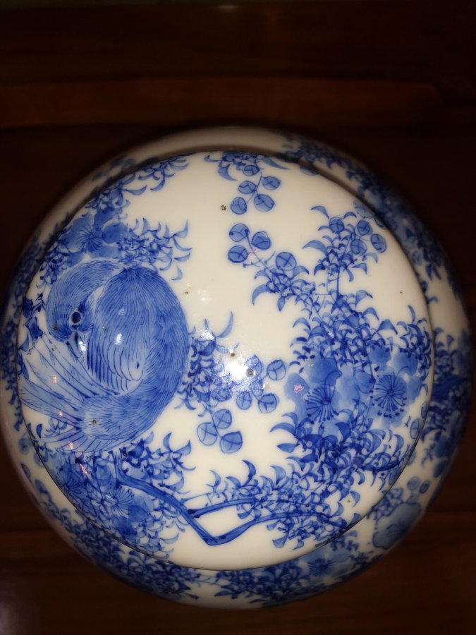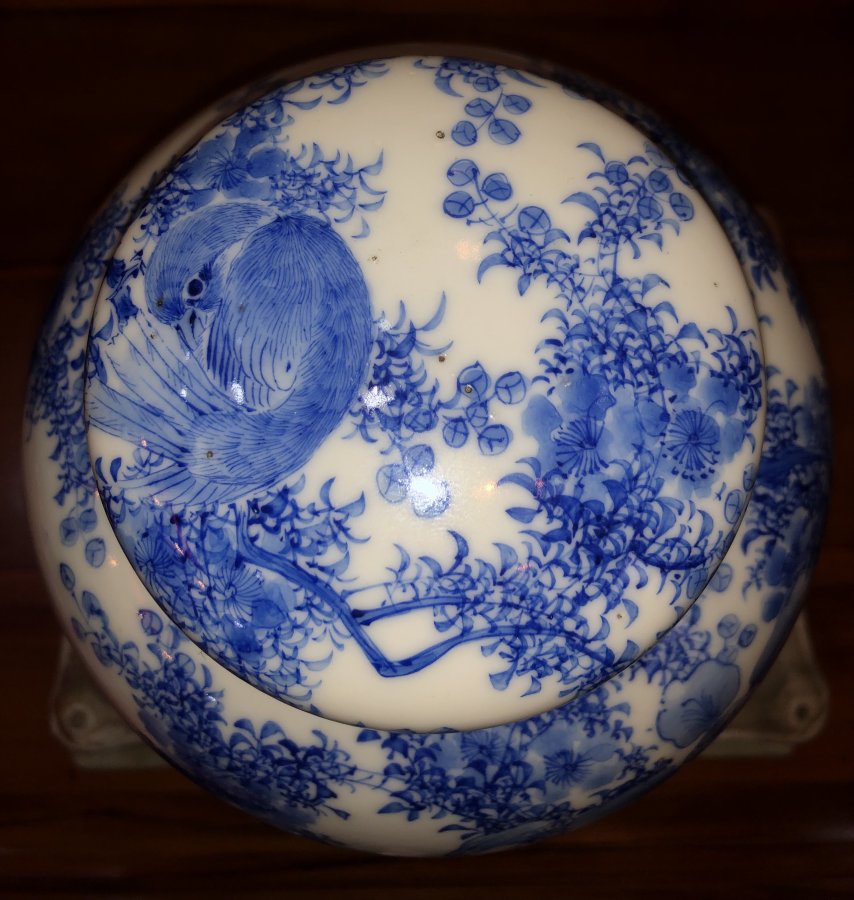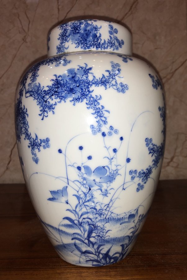 Một chiếc hũ trà Seto cổ của Nhật cuối tk19 size lớn với nét vẽ tuyệt đẹp qua từng đường nét, chất đất cao lanh trắng muốt cùng với chú chim đang uốn mình tạo nên một bức tranh hoàn hảo.