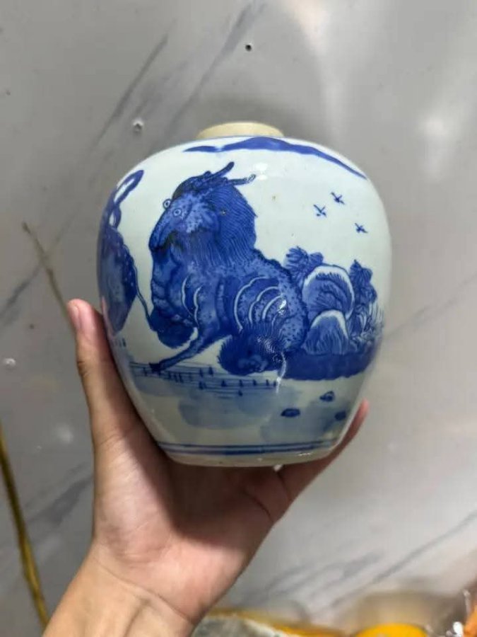 Hũ trà vẽ lân