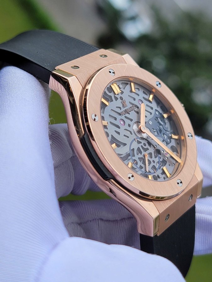 Hublot Classic Fusion King Gold 18k Ultra Thin Skeleton, Ref: 545.OX.0180.LR, Hand Winding (cót tay), Vàng hồng đúc 18k nguyên khối, Size 42mm, Like new fullbox, Giao lưu 318 triệu (Retail:~ 650 triệu) ah