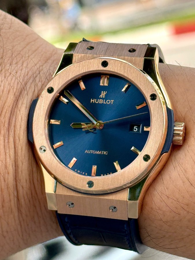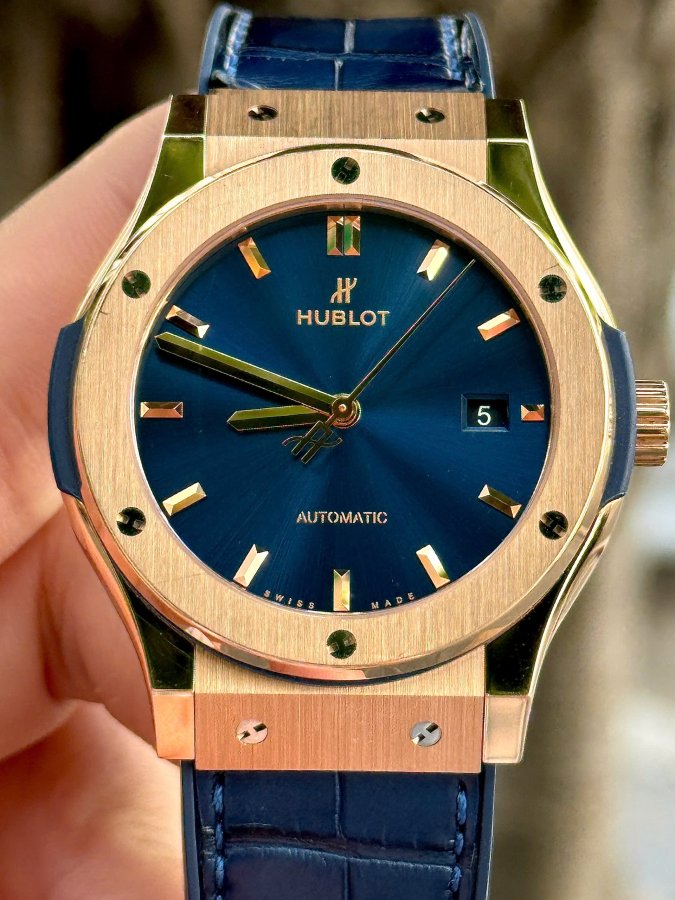 Hublot Classic Fusion Titanium Blue King Gold 18k, Ref: 542.OX.7180.LR, Vàng đúc 18k nguyên khối, Size 42mm, Like new fullbox, Giao lưu 330 triệu (Retail:~700 triệu) ah