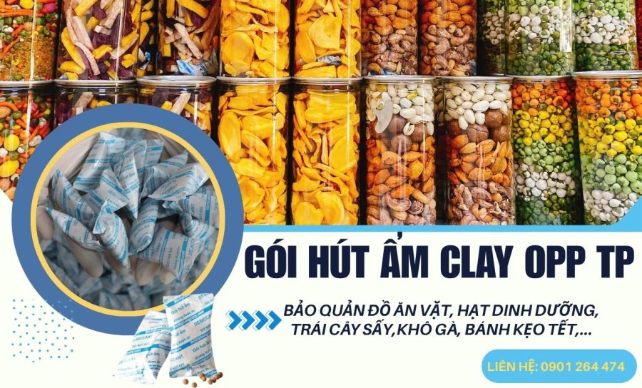 Đối với nhóm hàng ăn vặt và bánh mứt Tết, gói hút ẩm Clay đặc biệt phát huy hiệu quả: