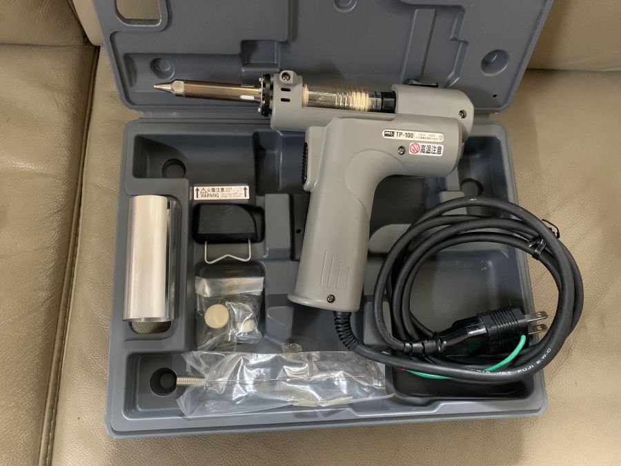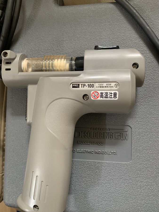 Máy hút thiếc Nhật còn mới nguyên hộp mới test thử 100 v 65w có điều chỉnh nhiệt từ 250...450 độ c đầu hút 10, ống bảo vê giá đỡ bộ lọc que thông thiếc sau hút