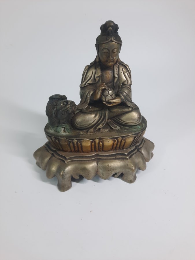 Tình trạng: tượng xưa nhũ bạc, chất liệu đồng