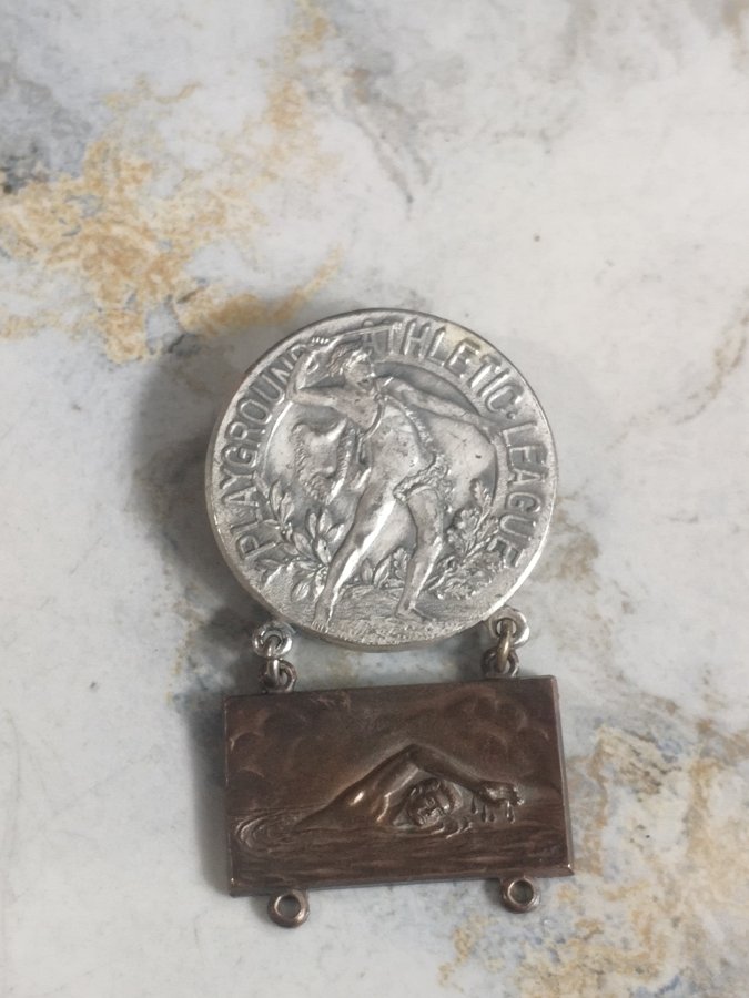 huy chương cài áo giải đấu sân chơi liên đoàn thể thao chuẩn bạc xưa sưu tầm. đường kính 30mm. giá wed nước ngoài khá cao