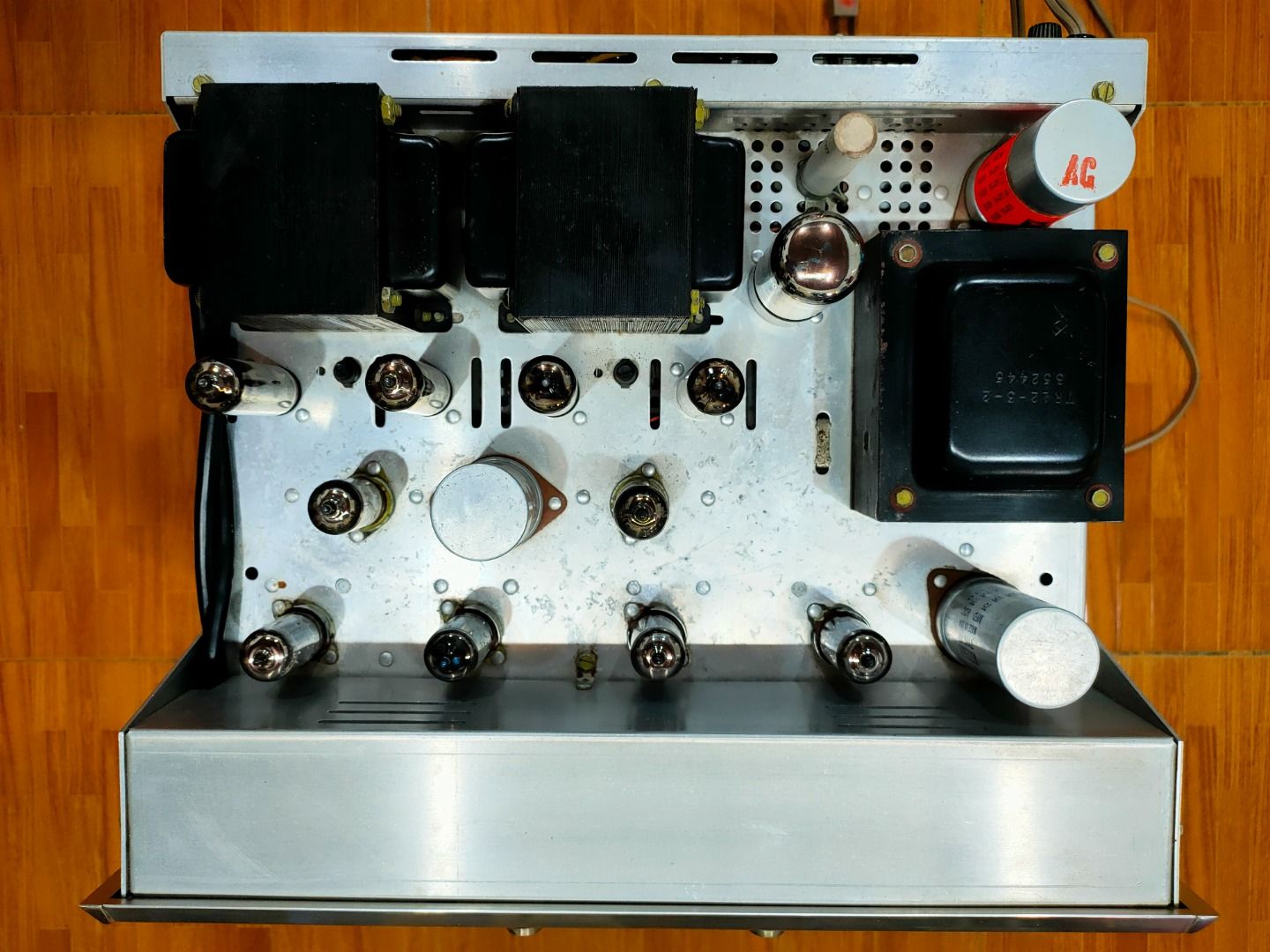 Máy chạy toàn bóng dữ: 4 bóng công suất Mullard cỗ, phiến bẩn, 2 bóng lái 6u8 Vavlo, 2 bóng pre Telefunken trơn, đáy logo, 2 bóng phono GE mỹ, bóng nắn GZ34 Mullard. Toàn bộ bóng có số đo good.