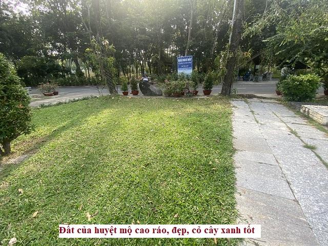 - Diện tích lớn: 13,02m² (gấp đôi so với diện tích tiêu chuẩn), thuộc khu vip B1.2. Huyệt mộ nằm ở vị trí đất cao ráo, cây cỏ tươi tốt, vô cùng đẹp.
