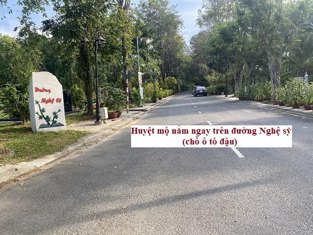 - Huyệt mộ nằm ở vị trí siêu VIP, cách Vĩnh Hằng Đài (tháp Hoa sen màu hồng) chừng 50m, gần cổng chính, ngay cạnh đường đi trên đường Nghệ sỹ, nơi yên nghỉ của các nghệ sỹ có tên tuổi như: GSTS Trần Văn Khê, nhà văn Sơn Nam, nhạc sỹ Phạm Duy, nhà thơ Kiên Giang, soạn giả Viễn Châu, đạo diễn Huỳnh Phúc Điền, đạo diễn Lê Mộng Hoàng, NSND Giang Châu, NSND Tám Vân, nhạc sỹ Nguyễn Văn Tý, nhạc sỹ Vũ Đức Sao Biển...