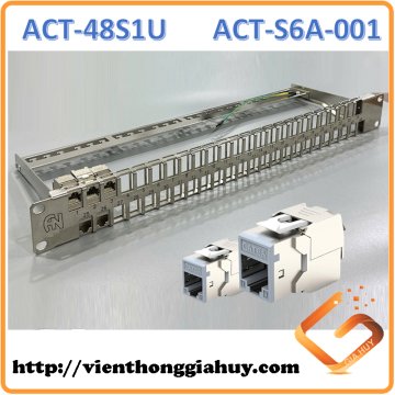 Thanh đấu nối 48 cổng 1U Cat6A Ancomteck , ACT-48S1U|ACT-S 6A-001, patch panel 48port Cat6A