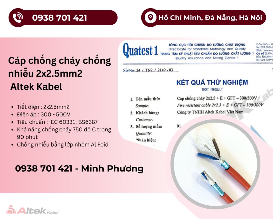 Cáp chống cháy chống nhiễu Altek Kabel 2x2.5mm2 Đà Nẵng, Huế, Thanh Hóa