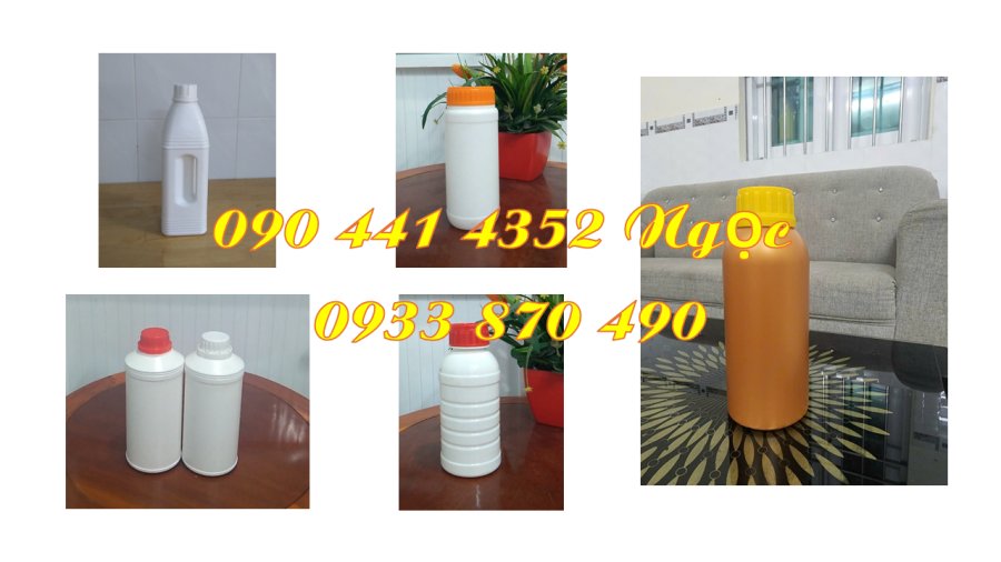 Chai nhựa 1 lít đựng dung môi, vỏ chai nhựa 0.5 lít dày, chai lọ 250ml đựng oxy già