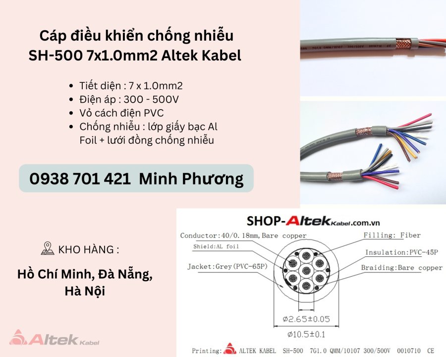 Cáp điều khiển chống nhiễu SH-500 7x1.0mm2 Altek Kabel Đà Nẵng, Hà Nội, Hải Phòng
