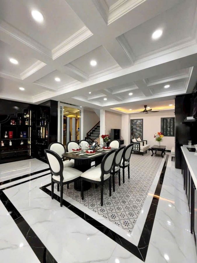 - Công năng: 2 phòng khách (trệt-lửng) + phòng bếp + 4 phòng ngủ trong đó 1 phòng master lớn(khu vực nghỉ ngơi + khu vực thay đồ + phòng xông hơi + bồn tắm + bancol) + 7 toilet + phòng karaoke + phòng thờ + phòng giặt phơi + sân thượng.