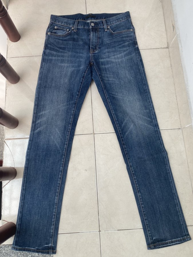 Về e jean Hịu uniqlo form ống suôn rất đẹp slim , có chất thun co giãn nhẹ, màu xanh wash rất bụi bậm đẹp mới zin nguyên thuỷ từ nút tới lai quần,vòng bụng 82-84 ống 18 dài 109, ai cần xin liên hệ call nhắn vô tư,anh em ờ xa cọc mình gửi hàng
