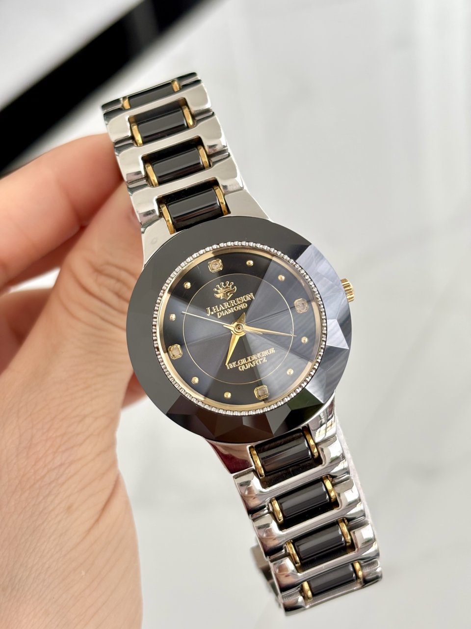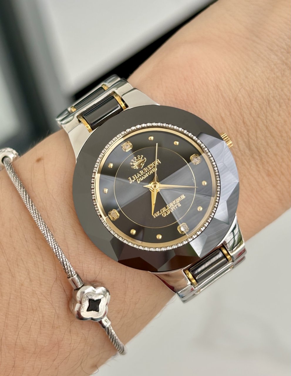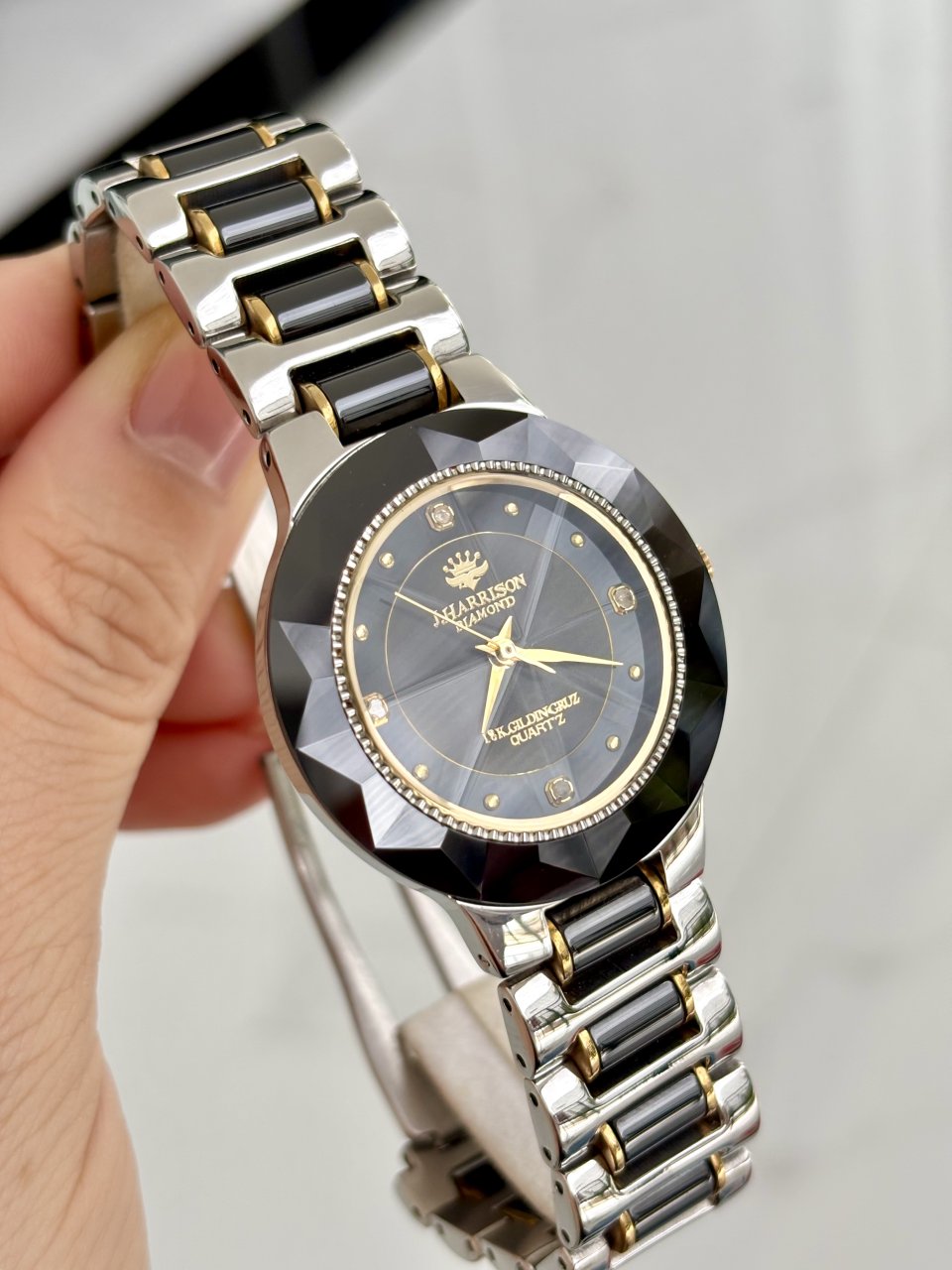 - Đá ceramic sáng bóng mới đẹp theo thời gian- Size 35mm, mặt kính cắt giác như viên kim cương lớn- Nút ti mạ vàng 18k - Đính 4 viên diamond thiên nhiên 4 góc