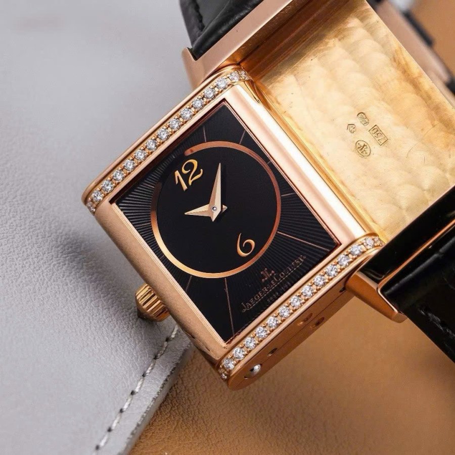 Jlc nữ vàng khối 18K vàng hồng. Bản đặc biệt . Có thể lật mặt để dùng cả 2. Size 24x38mm Quá rẻ so với giá mới 600tr