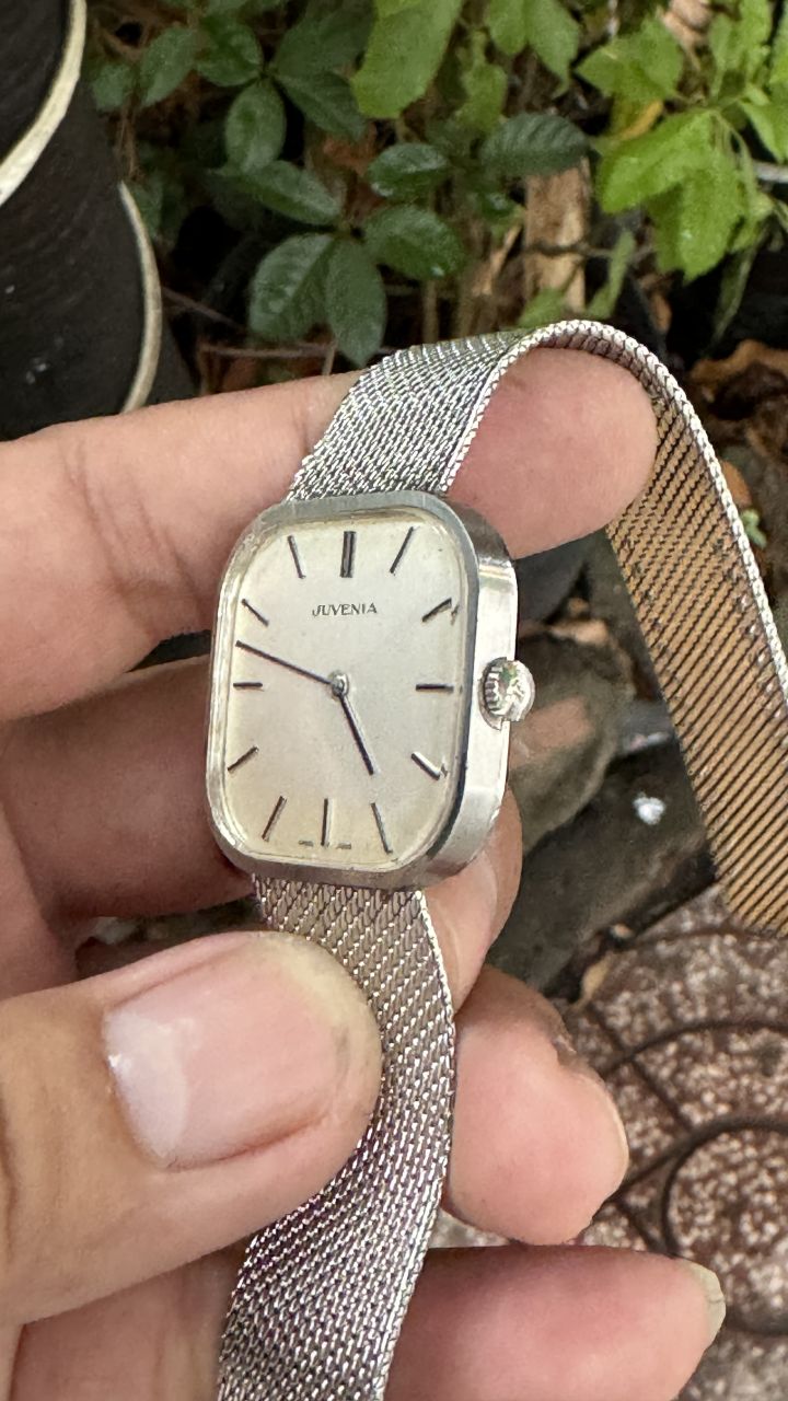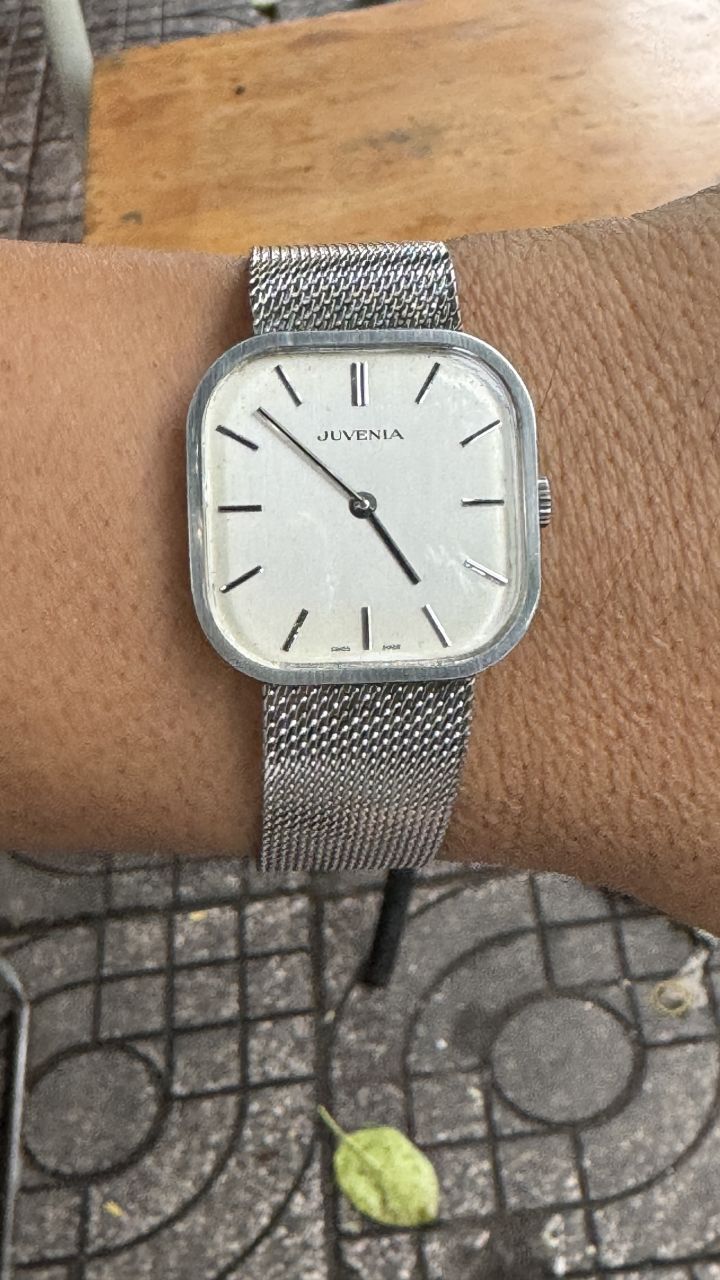 Juvenia cơ cót thuỵ sỹ Form tank full thép tây rất đẹp núm zin logo Mặt trắng sữa zin nguyên bản Máy cơ cót 17j siêu mỏng đẹp soi gương Size tank 30x30 Giá 1tr2 Call 0903761100 Lê Nhật