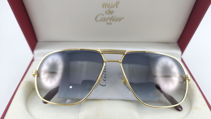 KC6171: kính mát bọc vàng Cartier PARIS Tank Louis size 59-14 140 Seri 8030029