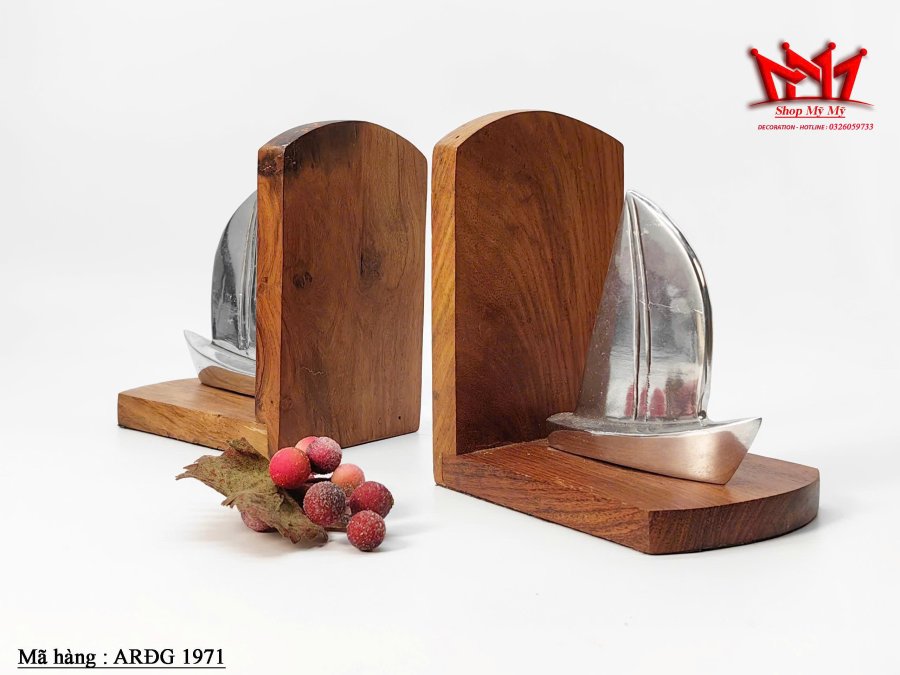 Kệ chặn sách decor hình thuyền được làm từ gỗ tự nhiên kết hợp nhôm cao cấp, mang phong cách hiện đại và nghệ thuật. Sản phẩm giúp giữ sách ngay ngắn, đồng thời là điểm nhấn trang trí cho bàn làm việc, phòng khách hay kệ sách gia đình.