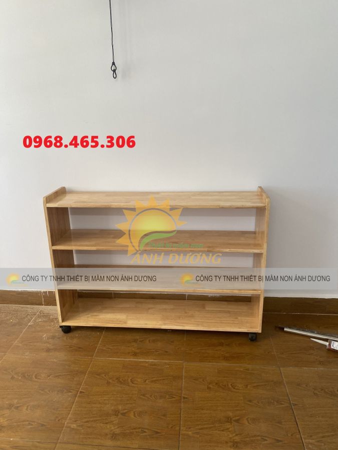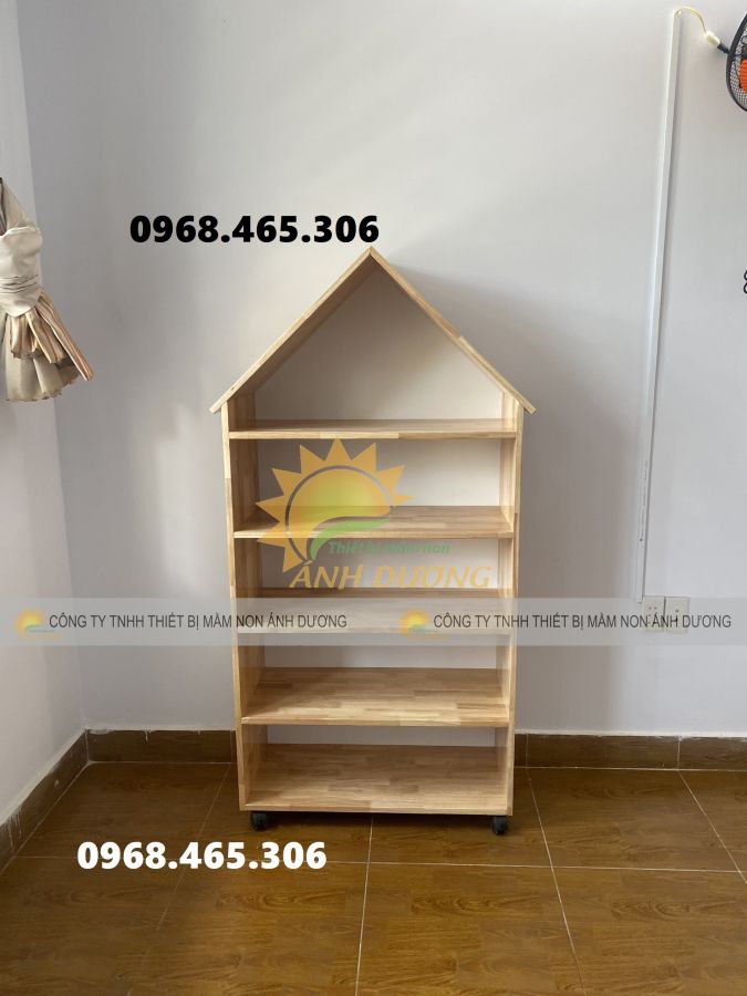 Kệ được thiết kế theo tầng để trưng bày sách và 1 tầng để lưu trữ đồ dùng giúp không gian được ngăn nắp và gọn để để bé có thể vui chơi một cách thoải mái.