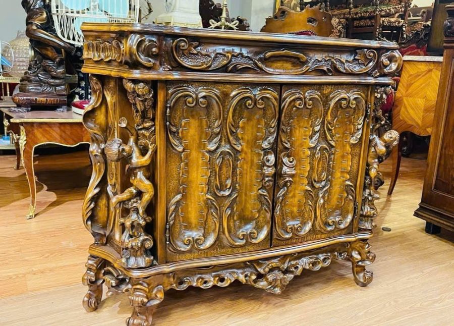 Kệ gỗ góc Ý xưa hàng tuyển tuyệt đẹp. Ngang 1m, cao 82cm, sâu 70cm