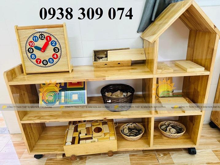 Kệ gỗ montessori mầm non 1m2, kệ đồ chơi montessori