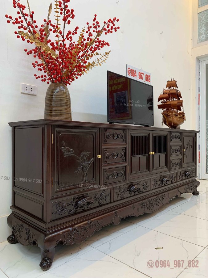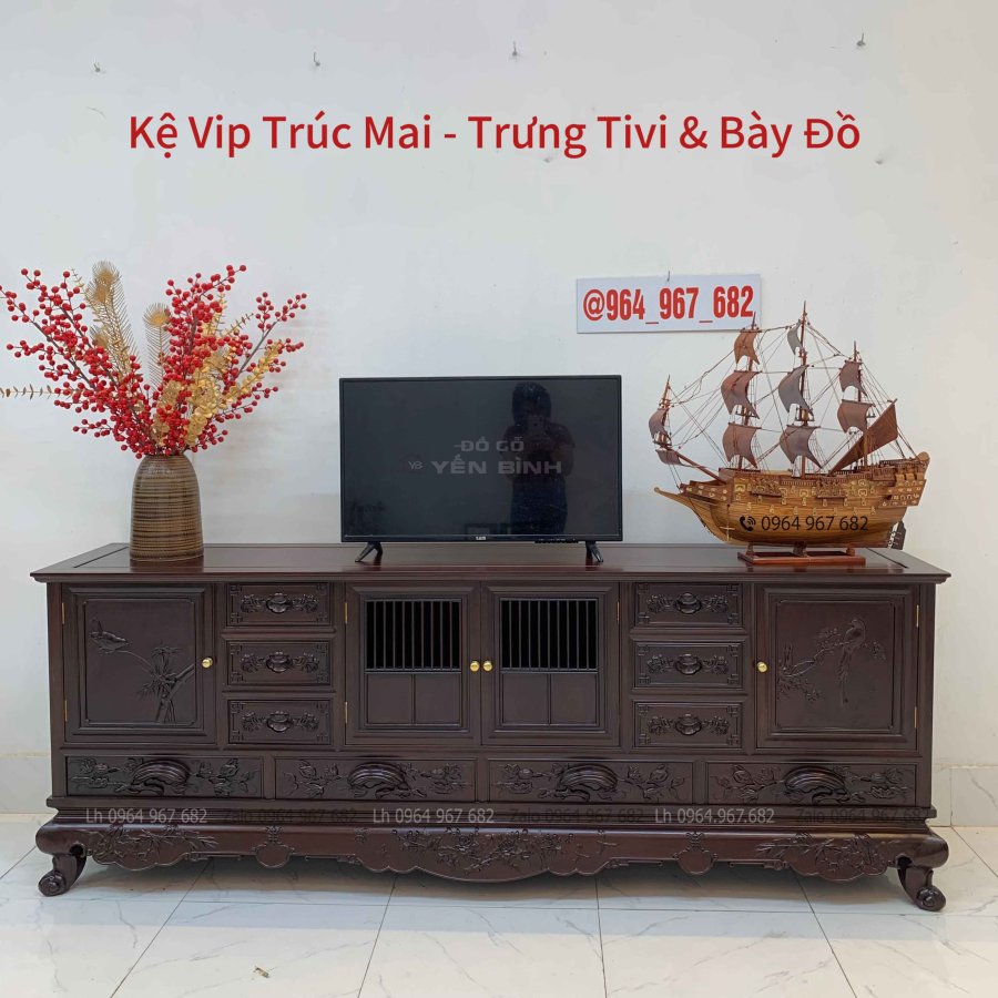 Kệ vip trúc mai trưng tivi - kệ bày đồ gỗ gụ đẹp