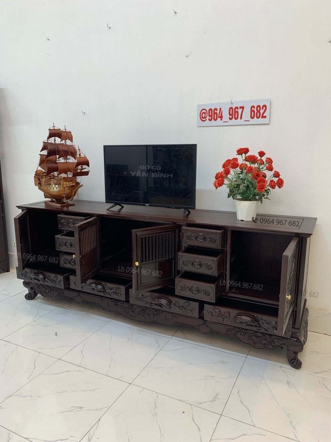 Bệ dưới của kệ tivi , được cơ sở em thiết kế trạm đục hoa hồng , kết hợp với cây trúc
