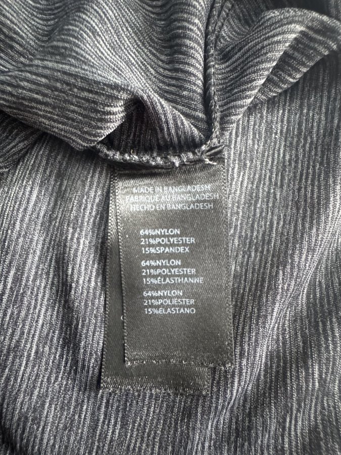 64% nylon, 21-% polyster 15% spandex