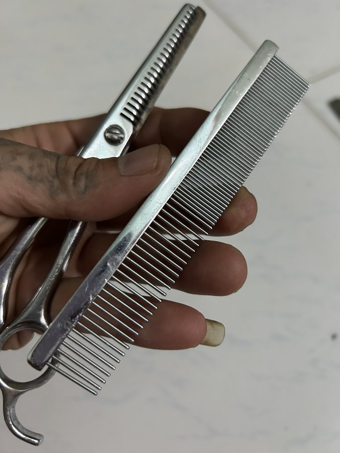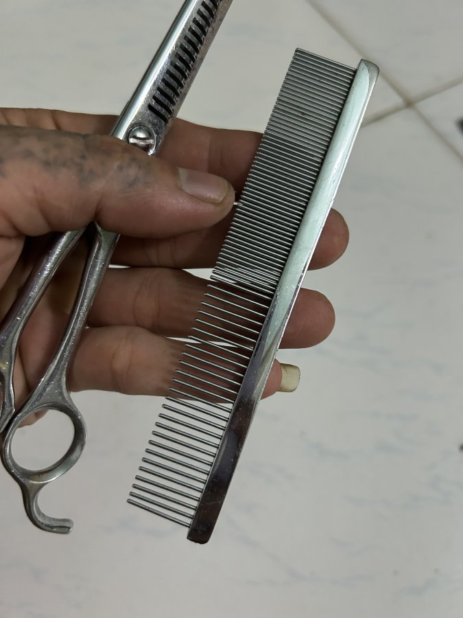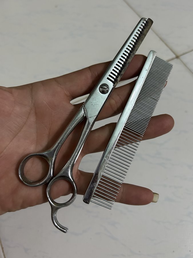 Kéo cắt tóc và lược kim loại