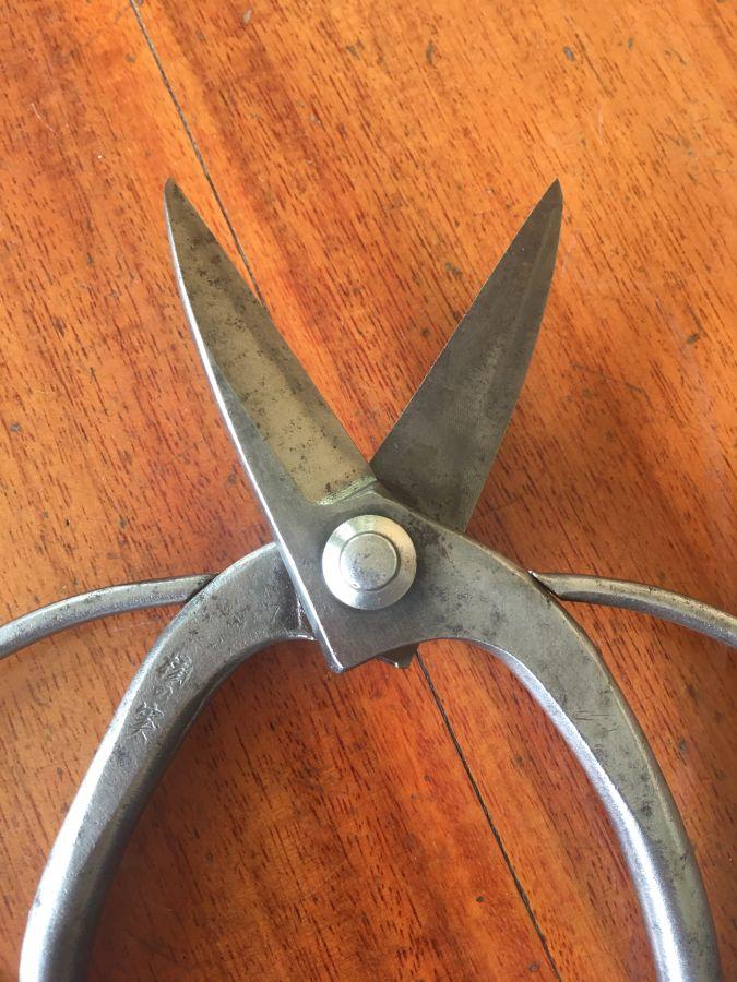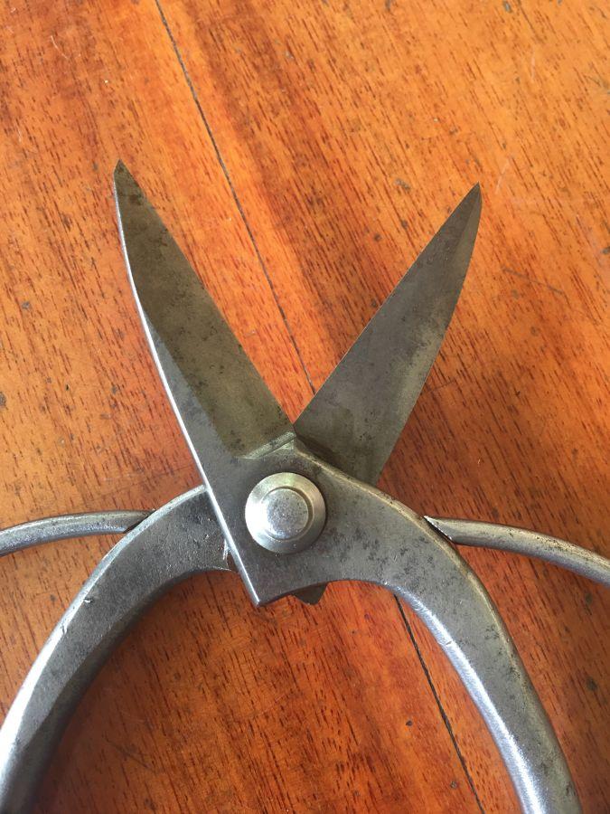 Bán cây kéo bướm thép đúc Nhật còn rất đẹp, lưỡi thép ghép nguyên zin và rất bén. Kéo dài 18,5cm; lưỡi 5,5cm