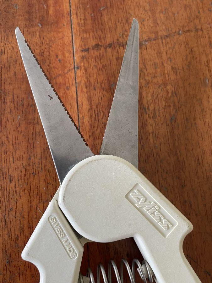 Bán cây kéo tia Zyliss còn như mới, lưỡi sử dụng 60mm bằng thép trắng dày 3ly có 1 mặt răng cưa chống trượt, rất bén